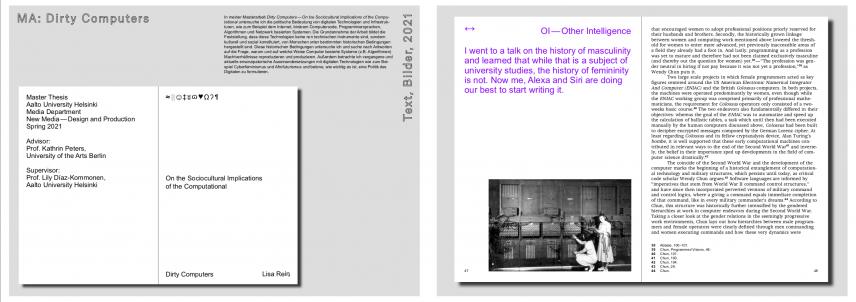 Lisa Rein a.k.a. Hysterical Pixel is an artist-researcher-designer based in Berlin. Their work ponders questions of digital media infrastructures, codes, languages, and emancipatory practices. They graduated from Aalto University, Helsinki’s department of New Media, with a minor in Visual Culture, Curating and Contemporary Art in 2021. Their Master’s Thesis, Dirty Computers — On the Sociocultural Implications of the Computational investigates the diverse histories of computers, the internet and the digital, and maps out ten metaphors that describe the paradigmatic features of current digital landscapes. LR teaches at the University of Applied Science (HTW), Berlin, and will start teaching at University of the Arts Bremen in April 2022. They are a member of collectives such as FemMusic and faces and contribute in different ways to digital feminist practices.